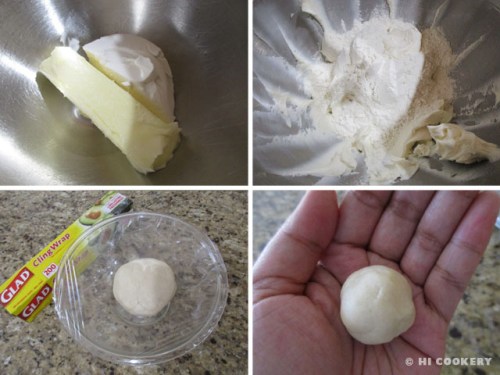 Make the mini pie/tart crust by mixing the butter and cream cheese until smooth. Gradually add the flour to make a soft dough. Roll into a ball, cover with a plastic wrap and chill it for at least an hour to harden. Then divide the dough into 24 one-inch balls.