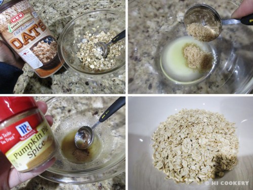 In a small bowl, combine the oats, pumpkin pie spice or ground cinnamon, brown sugar and melted butter. Mix until well combined. Set aside.