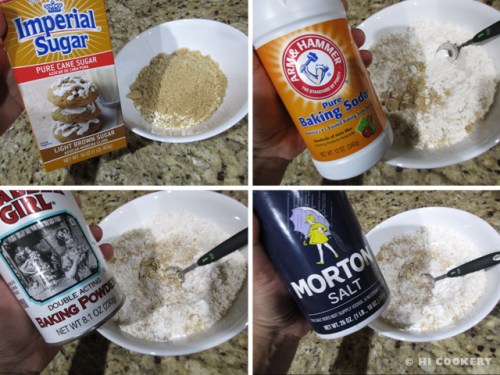 Add the brown sugar, baking soda, baking powder and salt.
