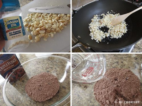 Toast the nuts and cool them. Set aside. In a large bowl, stir the water in the brownie mix. Blend well.