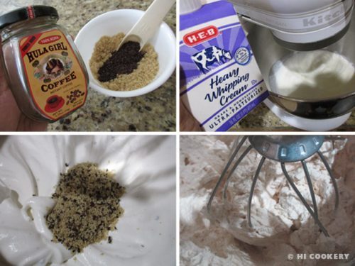 In a small bowl, combine the instant coffee granules with brown sugar. In a large mixing bowl, beat the whipping cream until stiff peaks form. Stir in the vanilla. Fold in the coffee-sugar mixture. Beat again until stiff.