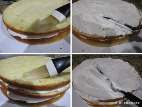 Continue with each cake layer, brushing with lemon elderflower liquid and then frosting it with the elderflower buttercream. Frost the top and sides of the cake.