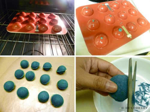 In a bowl, combine the cake mix, water, oil and egg whites. Blend until the batter is smooth. In a greased cake ball/pop pan, fill the wells with the batter. Secure the top part of the pan.