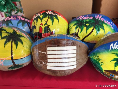 Islander and her brother sometimes would send their friends on the mainland a unique message from Hawaii on a painted hollowed-out coconut. The happily surprised recipients treasure their tropical gift and greeting because it is a very different and personalized postcard.