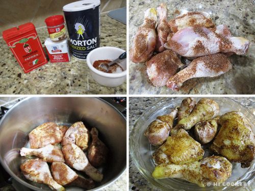 Season the chicken pieces with salt, pepper, nutmeg and paprika. In a large pot, heat the oil and fry the chicken until browned. Transfer to a plate.