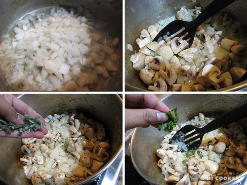 Sauté the onions with the mushrooms. Stir in the chopped sage and parsley.