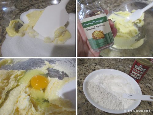 In a large bowl, cream the butter with the sugar. Stir in the almond extract. Beat in the egg. Set asude, In another bowl, combine the flour with baking powder.