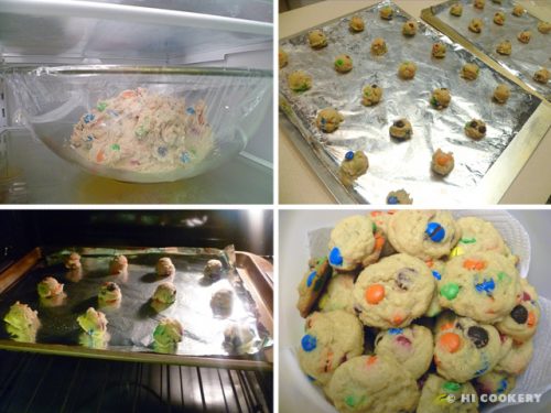 - We recommend letting the cookie dough rest after folding in the M&Ms. Cover the bowl and refrigerate for half an hour before scooping into balls. This also helps to prevent the cookies from spreading too much during baking.