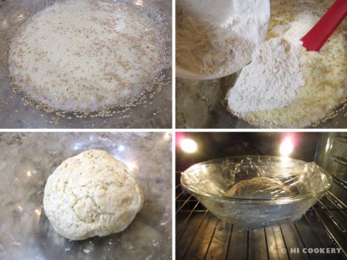 Cover the bowl and let stand at room temperature until frothy (about 1 hour). Uncover the bowl and stir in the 2 ¾ cup flour and mix until a sticky dough forms. Cover again and let rest for about half an hour.