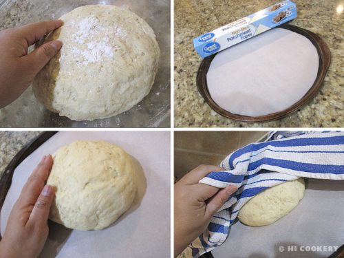Uncover the bowl and sprinkle 1-2 tablespoons of flour (or more as needed). Mix the dough until it pulls away from the sides of the bowl. Line a baking sheet with parchment paper. Place the dough on the prepared baking sheet and shape into a round loaf. Cover loosely with a cotton towel and let rise in a warm place for at least another hour or until doubled in size.
