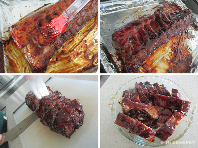 MRemove ribs from the oven and brush the other side with more honey. Put it back in the oven and bake for another 30 minutes or until cooked and tender. Remove from the oven. Brush with a little more honey on both sides. Let the meat sit for 5 minutes before cutting between the bones. Brush with honey-hoisin drippings. Serve hot on a platter.