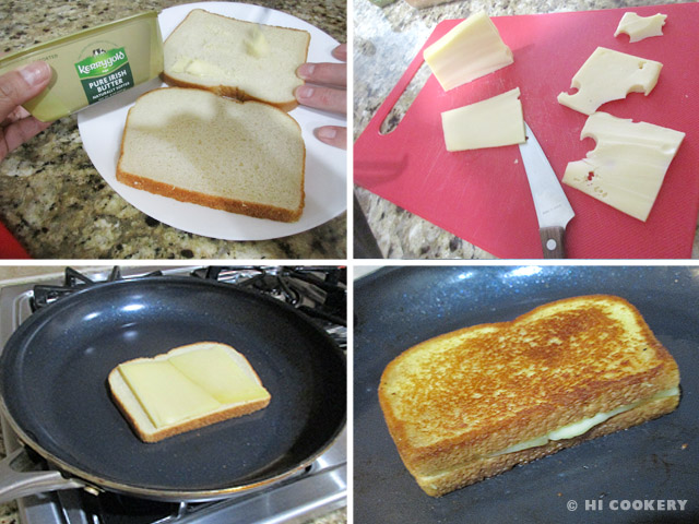Butter one side of two pieces of bread. Slice the cheese thinly so it melts quickly and evenly. Place on the unbuttered side of one piece of bread. Sandwich it with the other piece of bread with buttered side up. Heat a nonstick skillet on medium heat. Place the buttered side of the bread down on the skillet and cook for 2-3 minutes, being careful not to burn the bottom of the toast. Flip it over and cook 2-3 more minutes until the cheese is melted. Serve immediately.