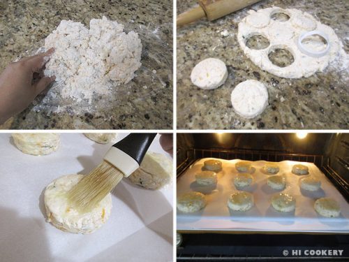 Use a 2 ¼ inch round cutter to cut out the scones, re-rolling scraps as necessary. Place onto a parchment paper lined baking sheet about two inches apart. Bake in a preheated oven at 350 degrees F for 15 minutes (the scones will have a pale brown top when done). Remove from the oven and cool on a wire rack.