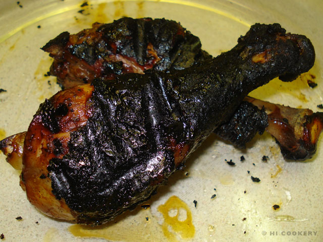 Highlander treats his wife, Islander, like a goddess—he serves her burnt offerings! On our new grill (a Christmas gift from her parents), he tried to barbecue guava-glazed drumsticks and charred the chicken. The heat was too high.