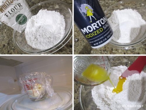 Chop the herbs and mince the shallot and garlic cloves. Add to the butter-oil mixture. Cut one lemon in half and squeeze the juice into the bowl (reserve the other half as a garnish).