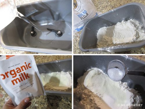 In the well of the bread machine loaf pan, place the water, flour, milk and sugar.