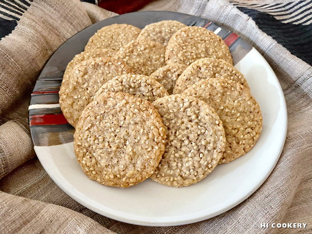 As we continue to “cook our way through the calendar and cultures with eclectic and ethnic recipes”, we asked Islander’s high school friend for some easy recipe ideas. Heidi S., who served several years as a Christian missionary in Africa until dangerous wars forced her back to America, told us about some stews, snacks and sweets that she ate. Of the latter, Heidi said chewy sesame cookies were something she ate while serving in Bangui, Central African Republic.