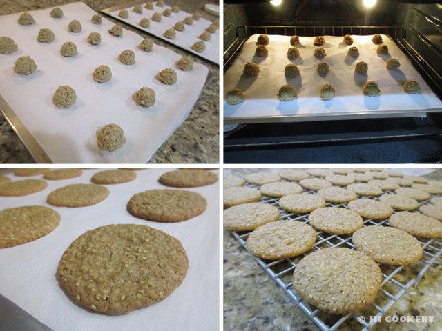 • The cookies will be soft out of the oven but will hold together when cooling.