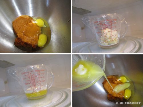 Add the olive oil. Squeeze the lemon juice and sesame oil into the mixture. Add ground cumin.