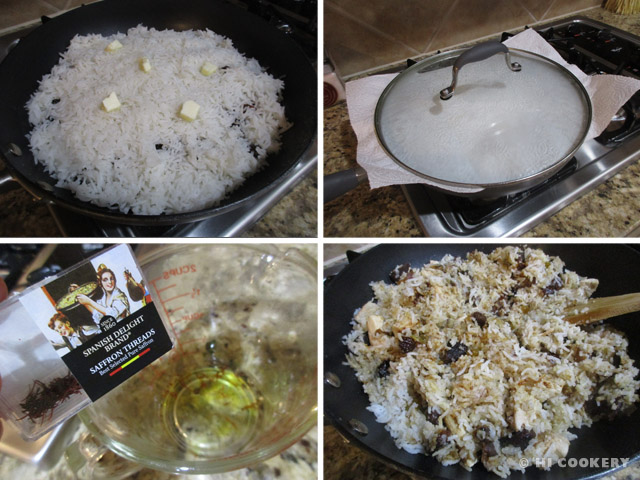 Tuck a few pieces of the remaining 1 tablespoon of butter into the rice. Cover with 2 paper towel or 1 dish towel before closing with the lid to prevent more moisture in the rice. Turn heat to low and cook for 30 minutes. Meanwhile, dissolve saffron in 3 tablespoons of hot water and mix until it changes color. Open the lid and pour it into the rice. Cover again with the towels and cook for another 25-30 minutes. Turn off the heat and take off the lid and towels. Ladle the rice onto a large platter or serve gently mixed in individual bowls.