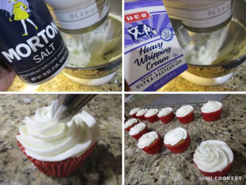 In a small bowl, dissolve the gelatin powder in water. Let sit while heating the cream with sugar. In a small saucepan, simmer the whipping cream with sugar, being careful not to burn the bottom of the pan. Remove from heat.